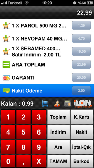 İlon Mobil Satış , İlon Eczane Otomasyonu Ultimate Versiyonu İle Entegre Çalışan Bir Terminal Yazılımıdır .