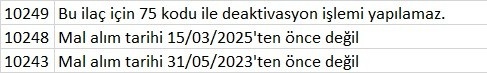 Renkli reçeteye tabi ilaçlar bu kapsama dâhil değildir. 75 sayılı deaktivasyon