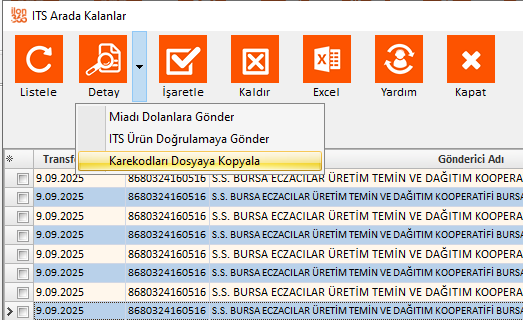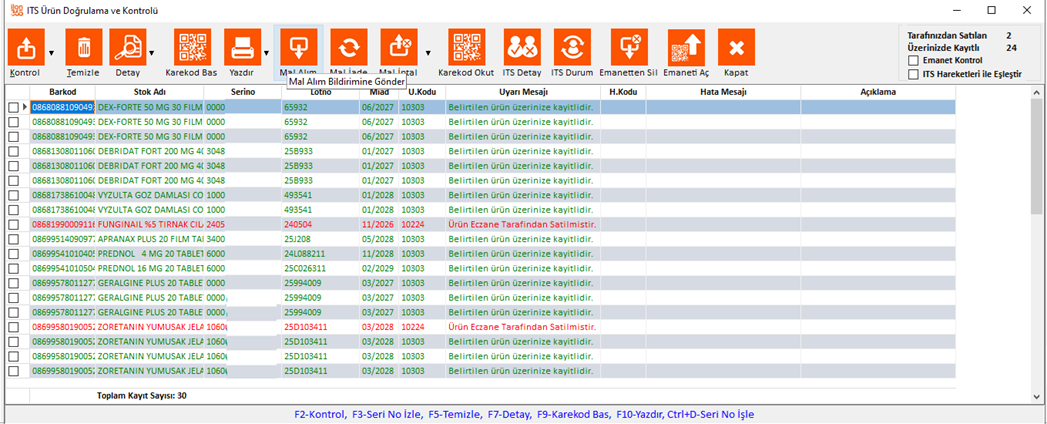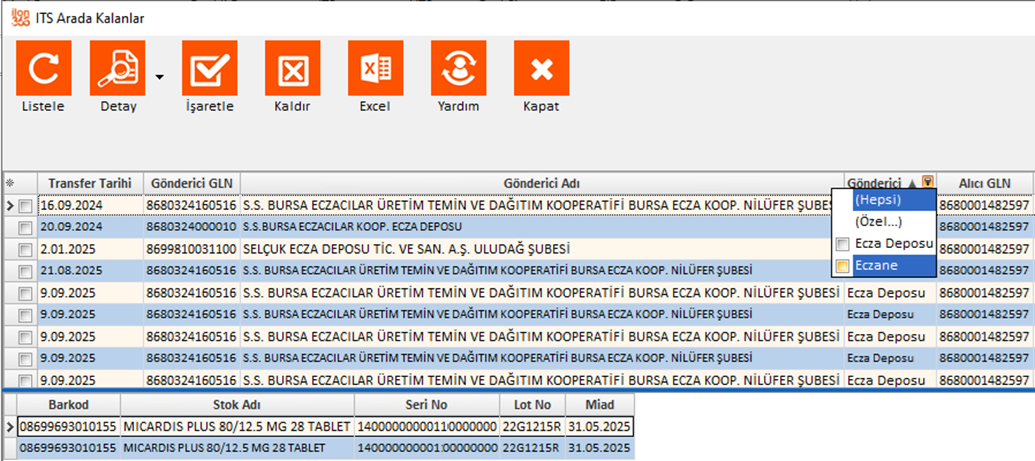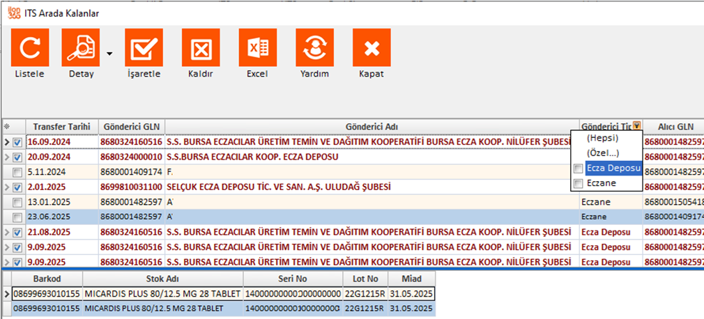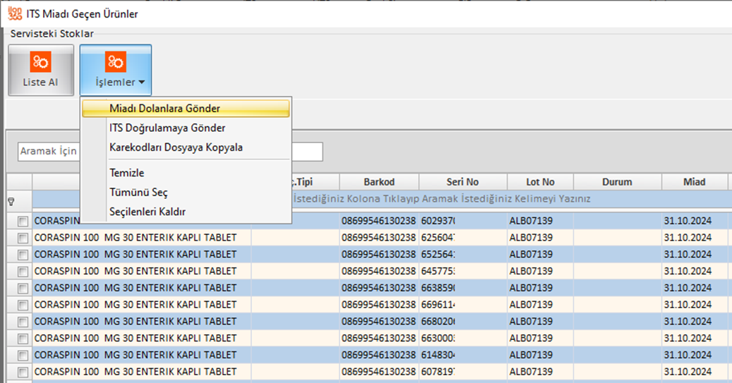 ekrandan “Liste Al” tuşuna basın. İTS kontrolü bitip miadı dolan ilaçlar
