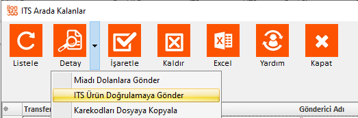 menüsünden “İTS Ürün Doğrulamaya Gönder” butonuna tıklayın.