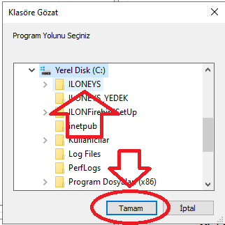 açıldığında program klasörüne tıklayarak c: disk altında ki İLONEYS dosyasını