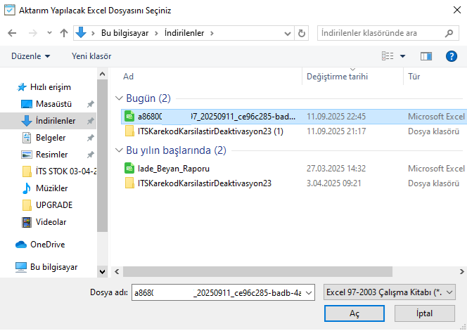 Dosyasını Aç” butonuna tıklayarak İTS panelinden indirmiş olduğunuz dosyayı