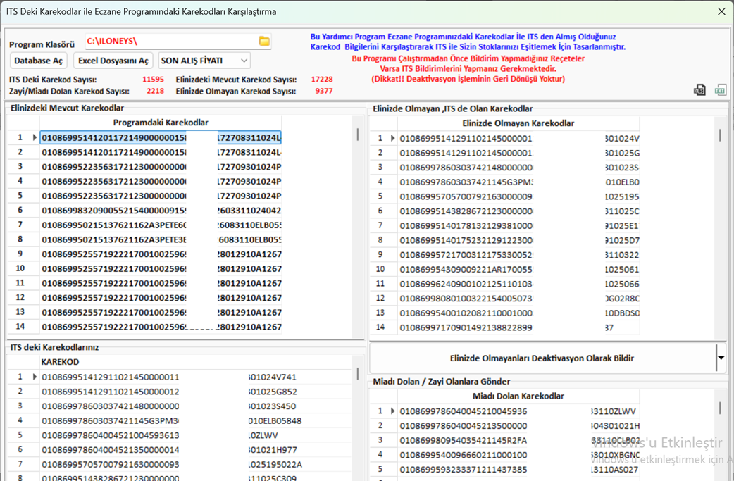 Programı indirmek için tıklayınız => https://www.iletisimonline.com/download/İTSKarekodKarsilastirDeaktivasyon_2025.zip