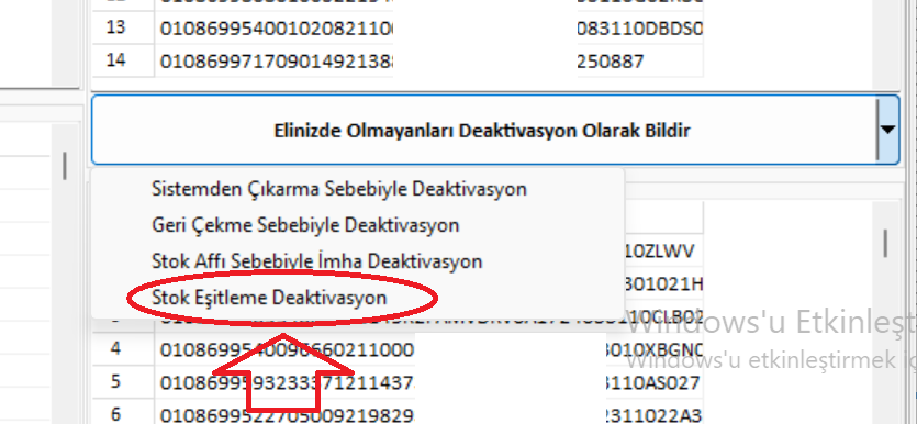 bölümde Stok Eşitleme Deaktivasyon ‘a butonuna basarak işleme devam ediniz.