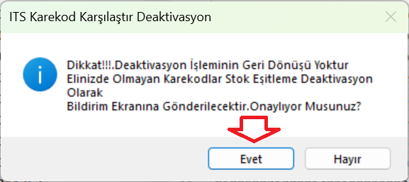 yapılmasını istiyorsanız evet butonuna basarak işlemi bitiriniz.
