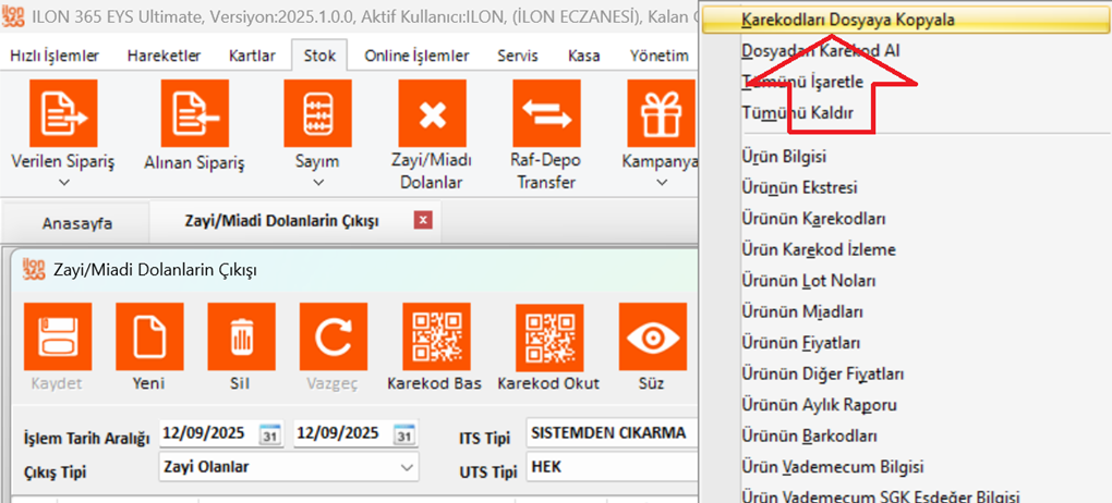 => İTS Miadı Geçen Ürünler bölümü tıklayınız.